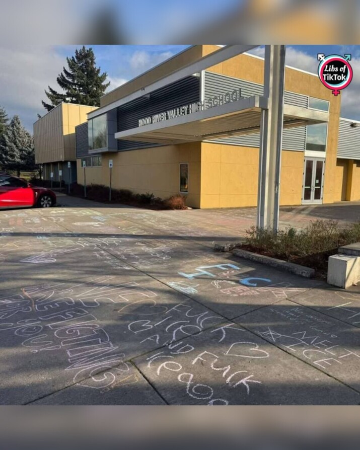 INBOX: Anti-ICE messages, including "F*ck ICE" and "Melt ICE," have been written all over the ground outside of Hood River Valley High School in Oregon.