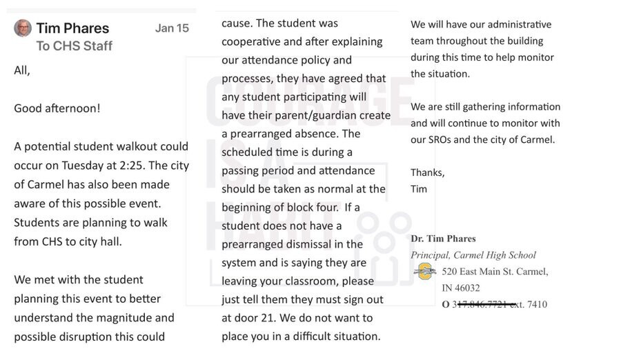 OMG. Principal of Carmel High School in Indiana which staged a walkout to protest ICE, sent an email to staff explaining that he collaborated with the student organizer to give students who participated pre-arranged absences