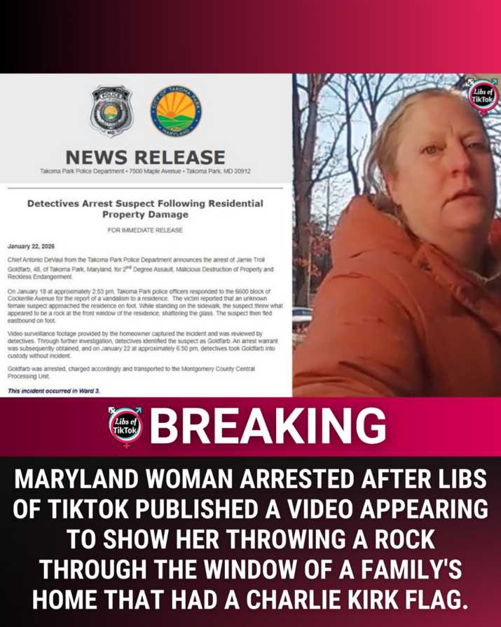 BREAKING UPDATE: Maryland woman ARRESTED after Libs of TikTok published a video appearing to show her throwing a rock through the window of a family's home that had a Charlie Kirk flag.