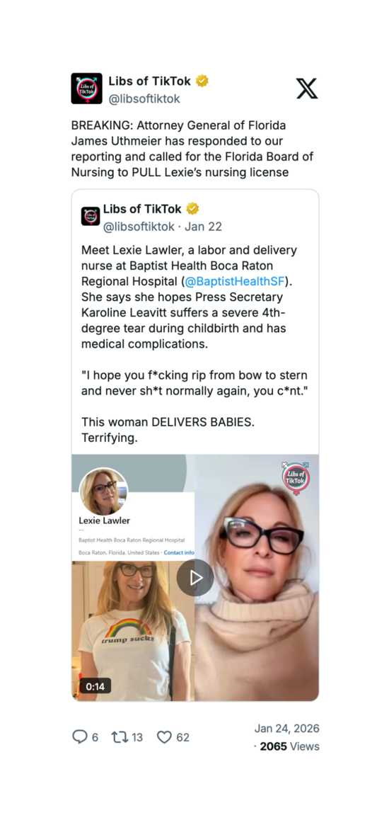 BREAKING: Attorney General of Florida James Uthmeier has responded to our reporting and called for the Florida Board of Nursing to PULL Lexie’s nursing license