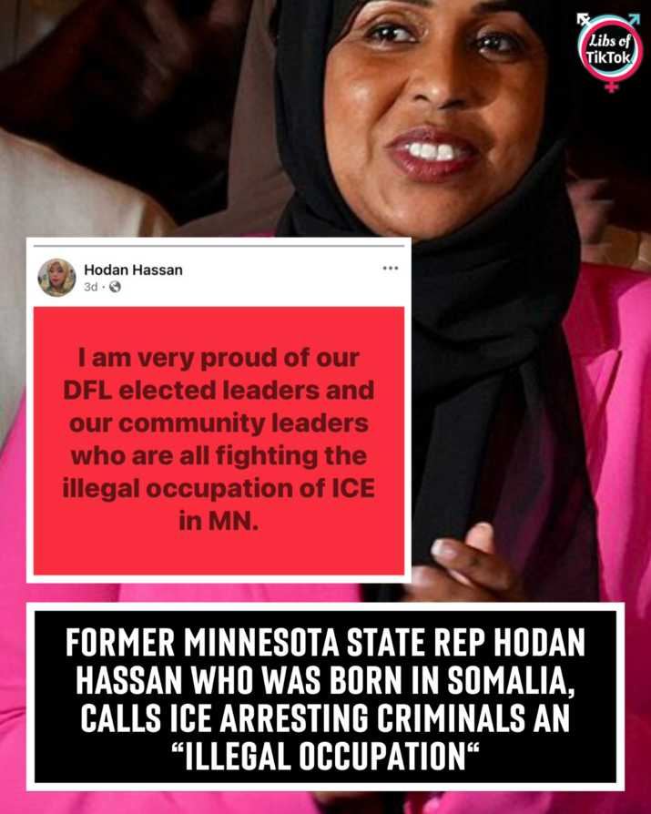 Former Minnesota state rep Hodan Hassan who was born in Somalia, calls ICE arresting criminals an “illegal occupation“ https://truthsocial.com/@libsoftiktok/115956620921423467
