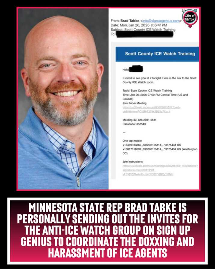 SCOOP: Minnesota State Rep Brad Tabke is PERSONALLY sending out the invites for the anti-ICE watch group on sign up genius to coordinate the doxxing and harassment of ICE agents