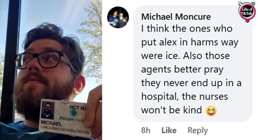 Meet Michael Moncure, a registered nurse at Atrium Health in North Carolina. He commented online, saying ICE agents "better pray" they don't end up in a hospital because the nurses "won't be kind."