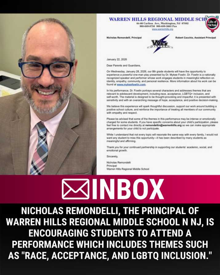 INBOX: Nicholas Remondelli, the Principal of Warren Hills Regional Middle School in NJ, is ENCOURAGING students to attend a performance which includes themes such as "race, acceptance, and LGBTQ inclusion."
