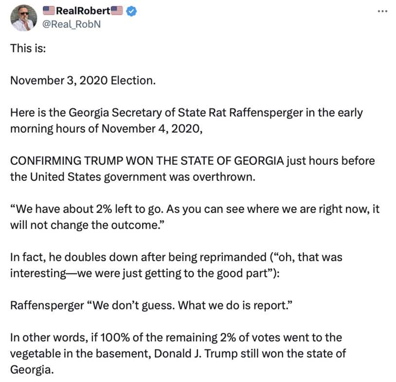 RT: https://truthsocial.com/users/realDonaldTrump/statuses/115978008041696617TRUMP WON BIG. Crooked Election!