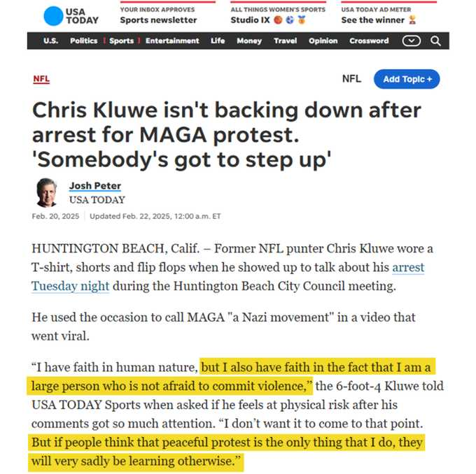 Chris Kluwe, a radical left-wing extremist who has a long history of promoting political violence, was just ENDORSED by the California Democratic Party.