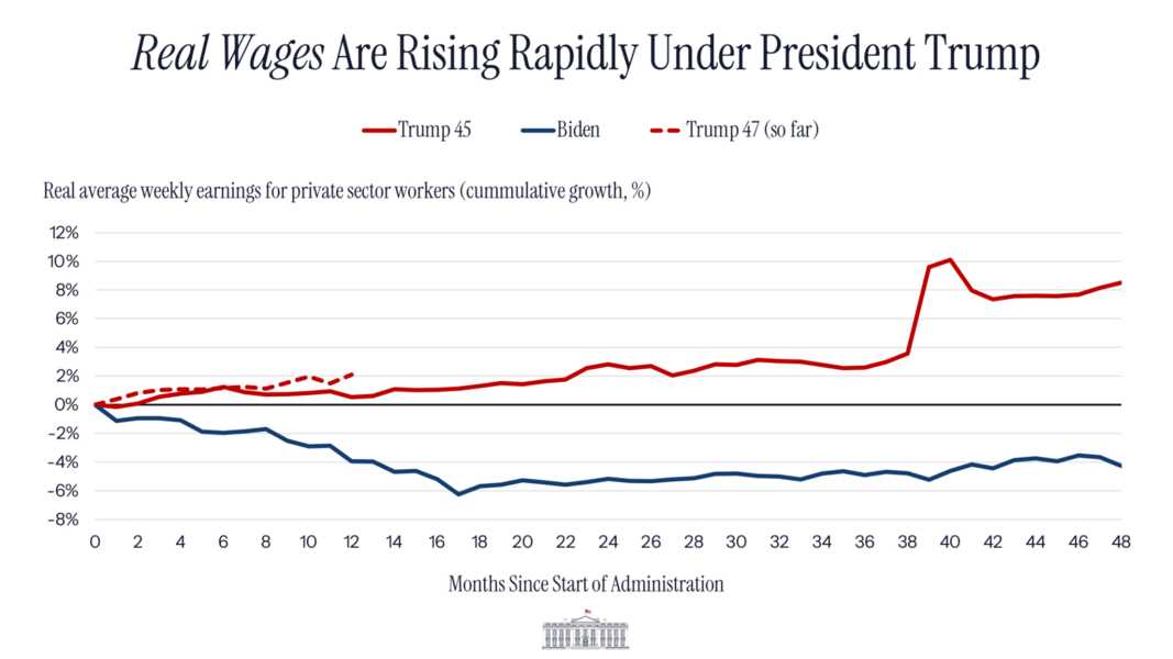 Under Biden, workers' real wages couldn't keep up with inflation — but under Trump, they're outpacing inflation and rising rapidly. https://truthsocial.com/@rapidresponse47/116138964377242416