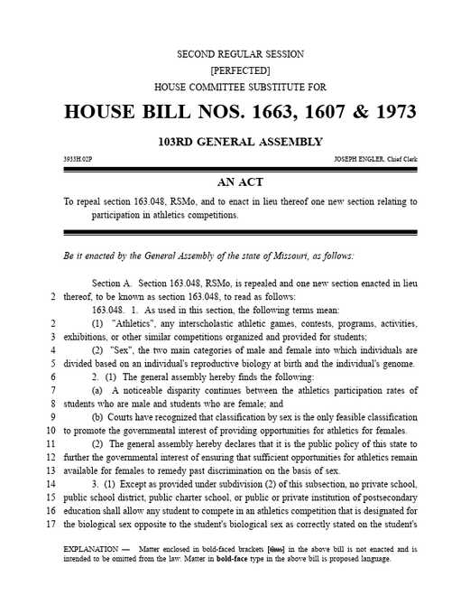 BREAKING: The Missouri House passed a bill PERMANENTLY BANNING males from invading female school sports.