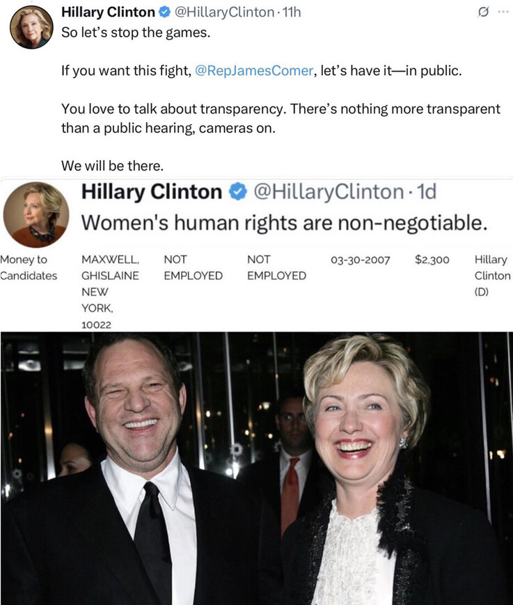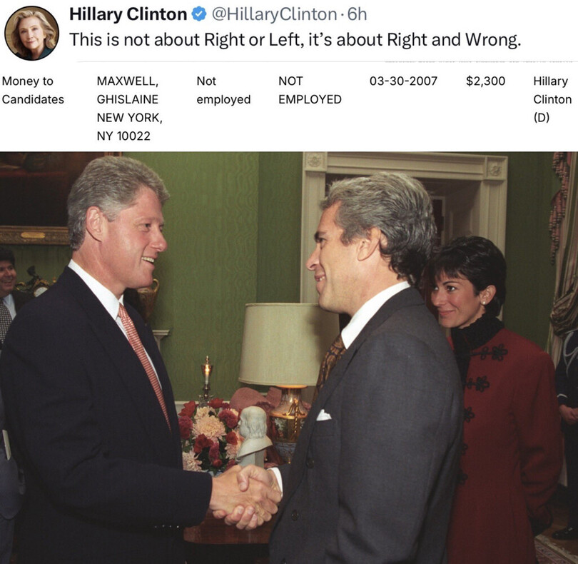 It was Hillary Clinton who raked in a $2,300 campaign contribution from Epstein's sex trafficker Ghislaine Maxwell.
