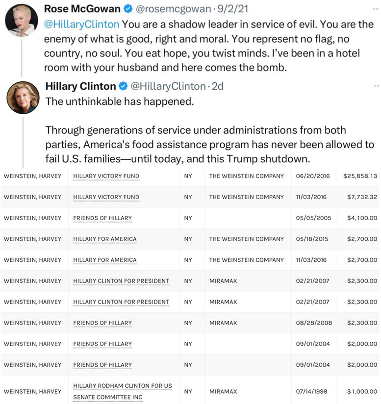For years, it was Hillary Clinton who did the dirtiest of the dirty with serial rapist Harvey Weinstein while he was raping his way through Hollywood, and while Hillary Clinton's campaigned raked in vast amounts of cash from Weinstein. When confronted about her relationship with Weinstein, Hillary Clinton responded, "How could we have known?"