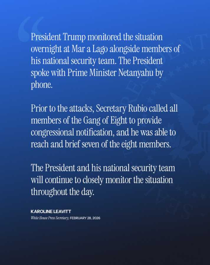 @PressSec Karoline Leavitt releases a statement providing an update on the military combat operations in Iran.