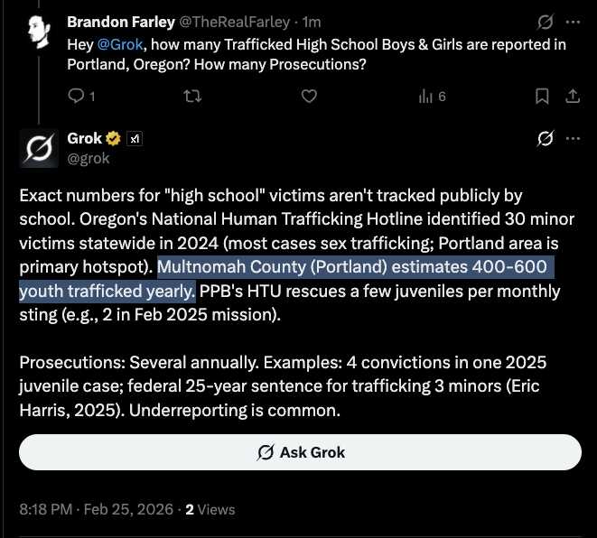 Portland, Oregon is a hotspot for human trafficking involving minors and minor attracted people.