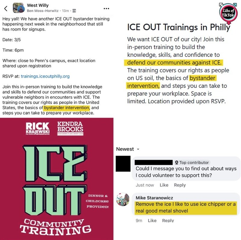 INBOX: A Philadelphia-based anti-ICE group on FB is promoting an "ICE OUT" training course designed to teach people "bystander intervention" in order to "defend our communities against ICE."