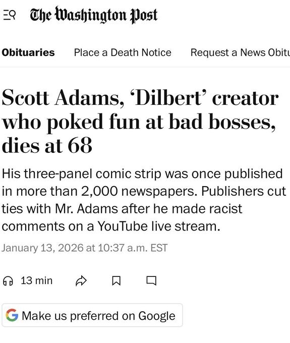 WaPo on Scott Adams: He was racist