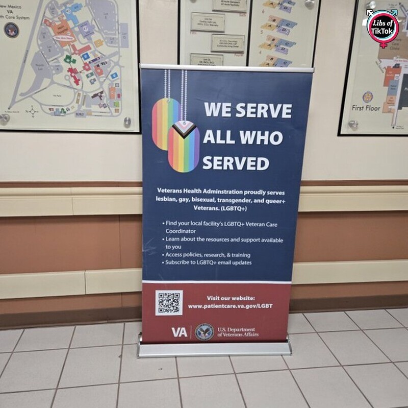 INBOX: Signs promoting transgender services displayed at the front entrance of the VA clinic in Albuquerque, New Mexico.