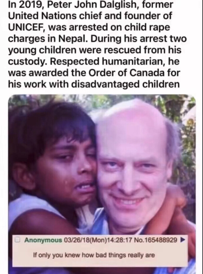 In 2019, he was found guilty of sexually assaulting children in Nepal. https://truthsocial.com/@BeBraveWiseBold/116194892557103465
