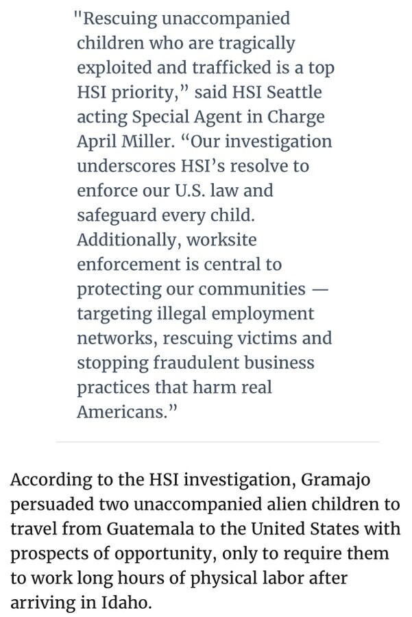 “Gramajo persuaded 2 unaccompanied alien children to travel from Guatemala to the US with prospects of opportunity, only to require them to work long hours of physical labor after arriving in Idaho.”