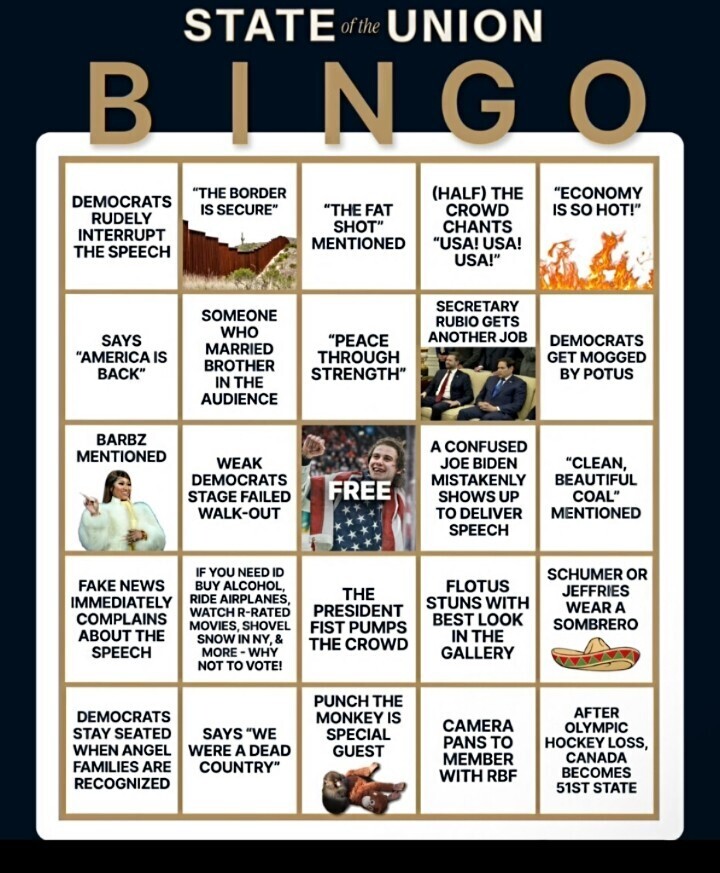 "Schumer or Jeffries wears a sombrero." https://truthsocial.com/group/memes/statuses/116128679638007772