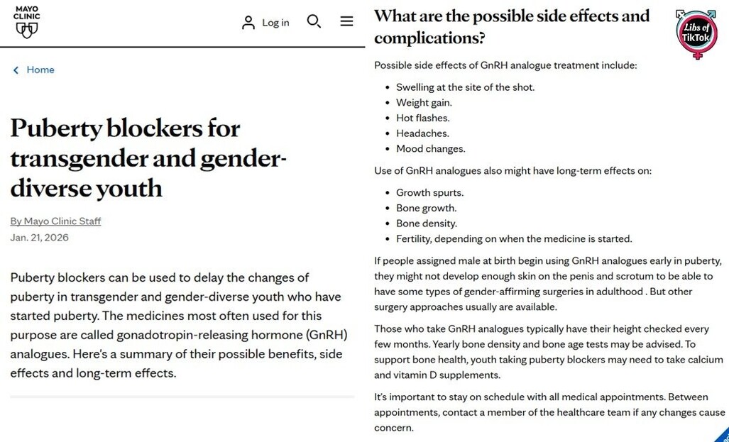 Mayo Clinic, the top-rated hospital in the world, is STILL promoting puberty blockers for children with gender delusions.