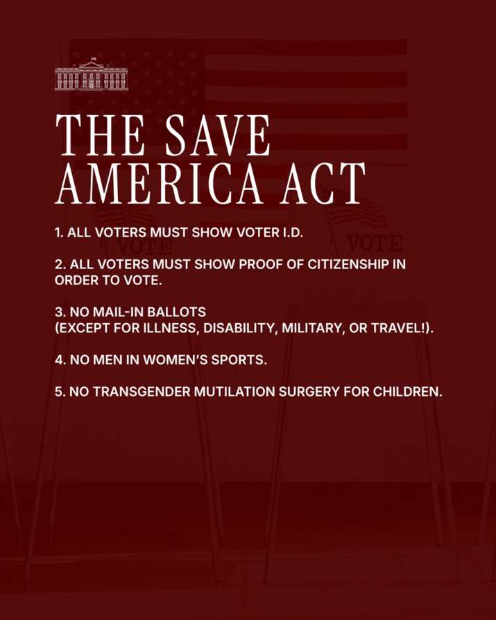 PASS THE SAVE AMERICA ACT! 🗳️ https://truthsocial.com/@WhiteHouse/116200497395035958