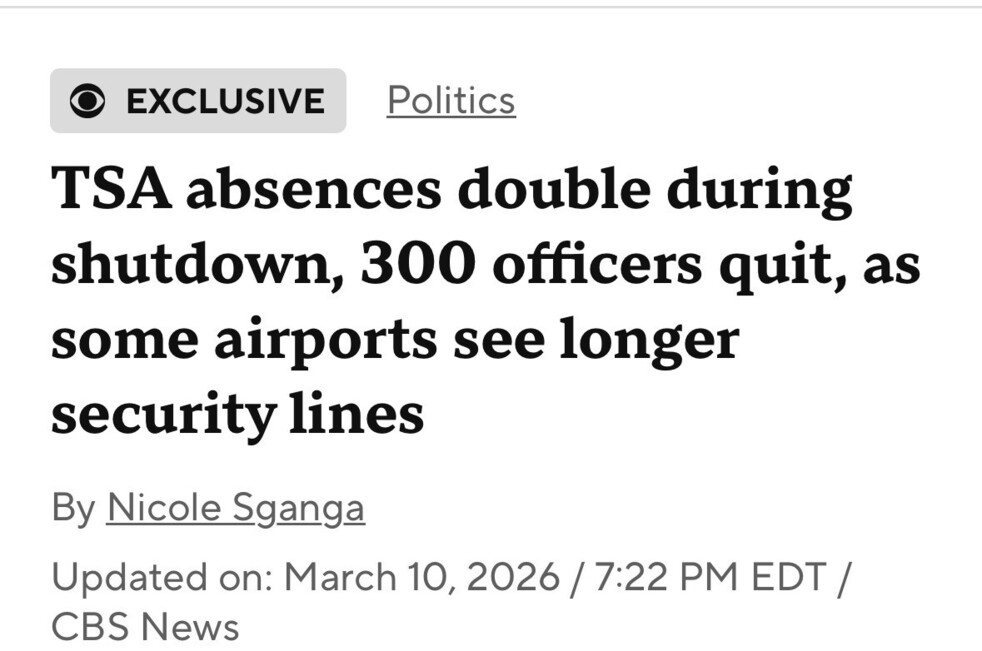 The Democrats are proudly inflicting this pain on the American people and TSA officers by keeping the Department of Homeland Security shut down.