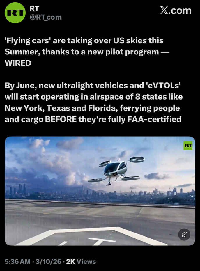 "Flying cars are coming! US DOT/FAA's eIPP pilot program greenlights eVTOL passenger & cargo ops as early as summer 2026 in 8 projects spanning 26 states—including NY/NJ, Texas, Florida, North Carolina, Utah, Pennsylvania, Louisiana, New Mexico (Albuquerque), Arizona, Idaho, Oklahoma, Oregon & more. Jetsons reality incoming! 🚀🛸 😂💪🏼🇺🇸