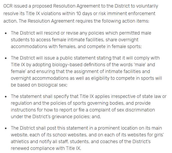 The district has now been issued a Resolution Agreement instructing them to: