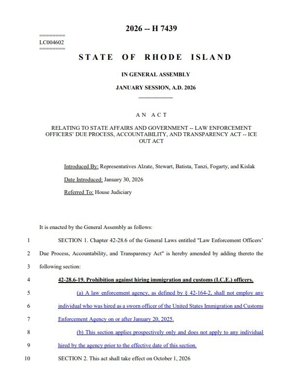 BREAKING: Democrats in Rhode Island have introduced a bill BANNING police agencies from hiring anyone who worked as an ICE agent https://truthsocial.com/@libsoftiktok/116222804440589302
