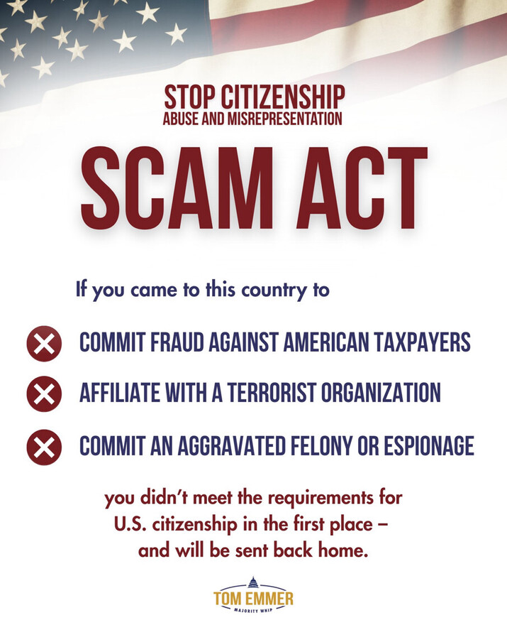 Senator Eric Schmitt and I intro’d the SCAM Act to make it easier to DENATURALIZE and DEPORT these monsters.
