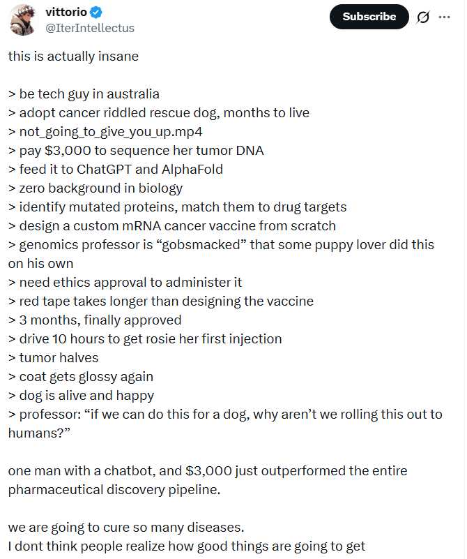 Aussie bloke with no biology background uses AI to shrink dog's tumor.