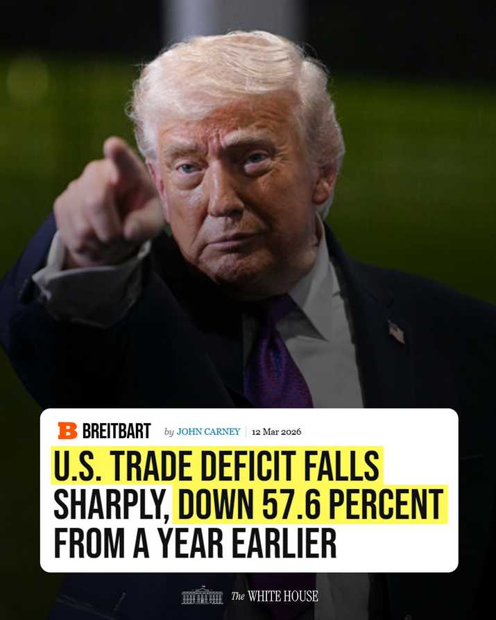 🔥 'U.S. Trade Deficit Falls Sharply, Down 57.6 Percent From a Year Earlier' https://truthsocial.com/@WhiteHouse/116234900613471252