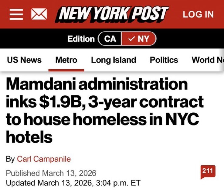 NYC faces a $5.4 billion budget gap, Zohran Mamdani is pushing taxpayers to absorb a $1.86 billion no-bid contract to house the homeless.