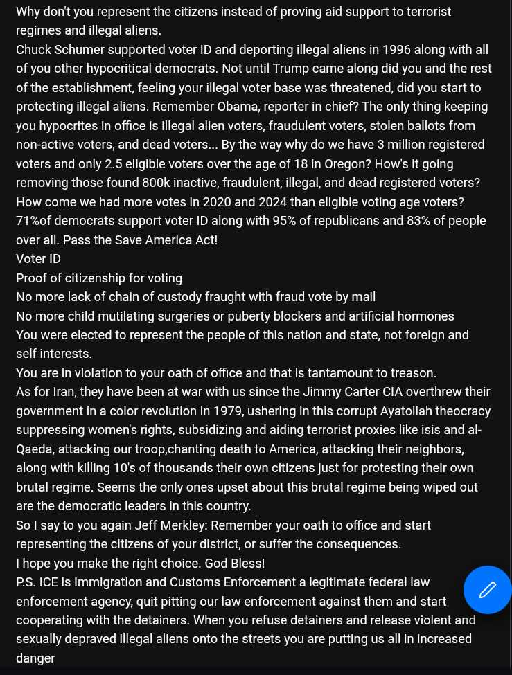 Merkley the election rigging is already happening due to mail in voting, illegal alien voting, dead voters, ballot harvesting, fake and fraudulent ballots, stolen identity/stolen inactive voter registrations, illegal alien licenses/auto DMV voter registration, manipulated electronic voting machines/mechanical tabulators, and so much more. Your attempt to swing the blame will not work.