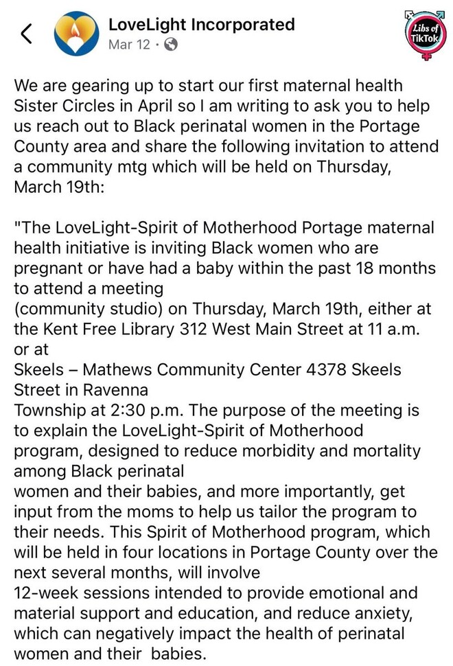 Ohio non-profit which received tax dollars is holding a maternal health workshop but the condition is you have to be Black