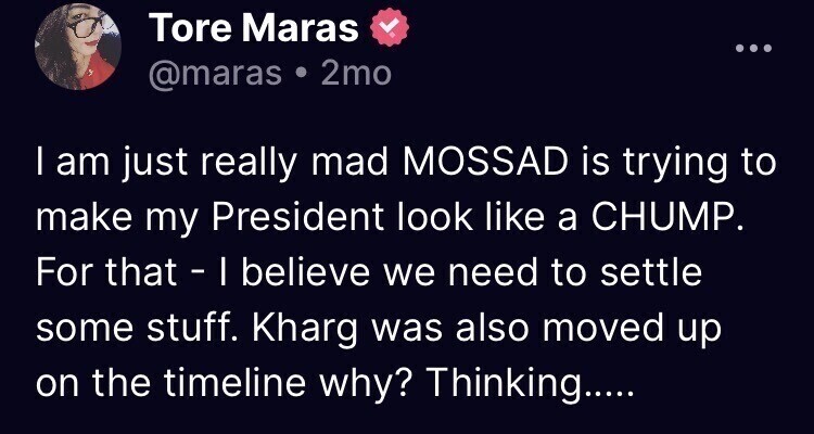 Glorification with this post only makes me believe even more that there’s something fishy about this. #Israel attacked but for some reason #Iran took it out on #Qatar. Israel is certainly pleased. Trying to fuck @realDonaldTrump over? Trying to widen the scope to the whole ME-at least Qatar? Using OUR CIC & MILITARY as puppets? Just like @maras warned about #KhargIsland