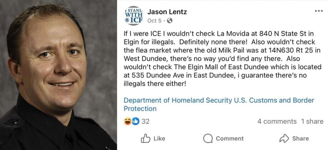 JUST IN: City of Elgin, Illinois, has FIRED Police Officer Jason Lentz after he made a post online suggesting that ICE check certain locations for criminal illegals.