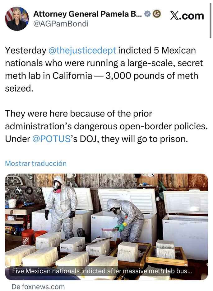 The Administration of President @realDonaldTrump is committed to confronting the scourge of synthetic drugs and the harm they pose to our communities, and this case is another example of that determination. We will continue working hand in hand with President Sheinbaum’s government to stop these networks and protect our nations 🇺🇸🇲🇽.