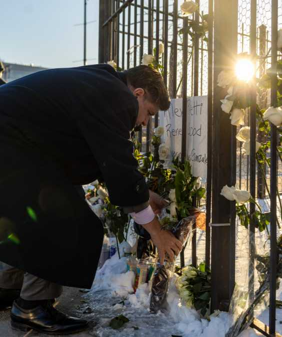 This was him giving flowers to an anti-ICE protester in MN who was shot when she hit an ICE agent with her car.
