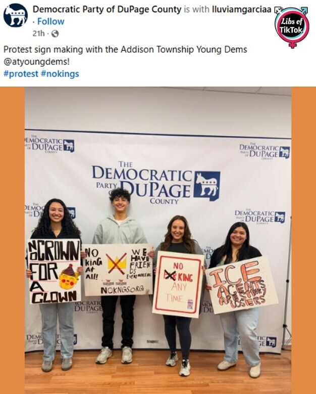 BREAKING: The official Democratic Party of DuPage County, IL, hosted an anti-ICE sign-making event for students