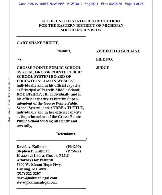 BREAKING: Michigan father Gary Shane Pruitt is SUING Grosse Pointe Public School System after they filed a "no-trespass" order against him for exposing a giant PRIDE Flag hanging inside the school.