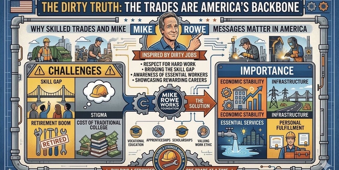Known to millions as the host of DIRTY JOBS, Mike Rowe has spent years shining a spotlight on the people whose hard work keeps America running. - "Work ethic is not a skill - it's a choice."