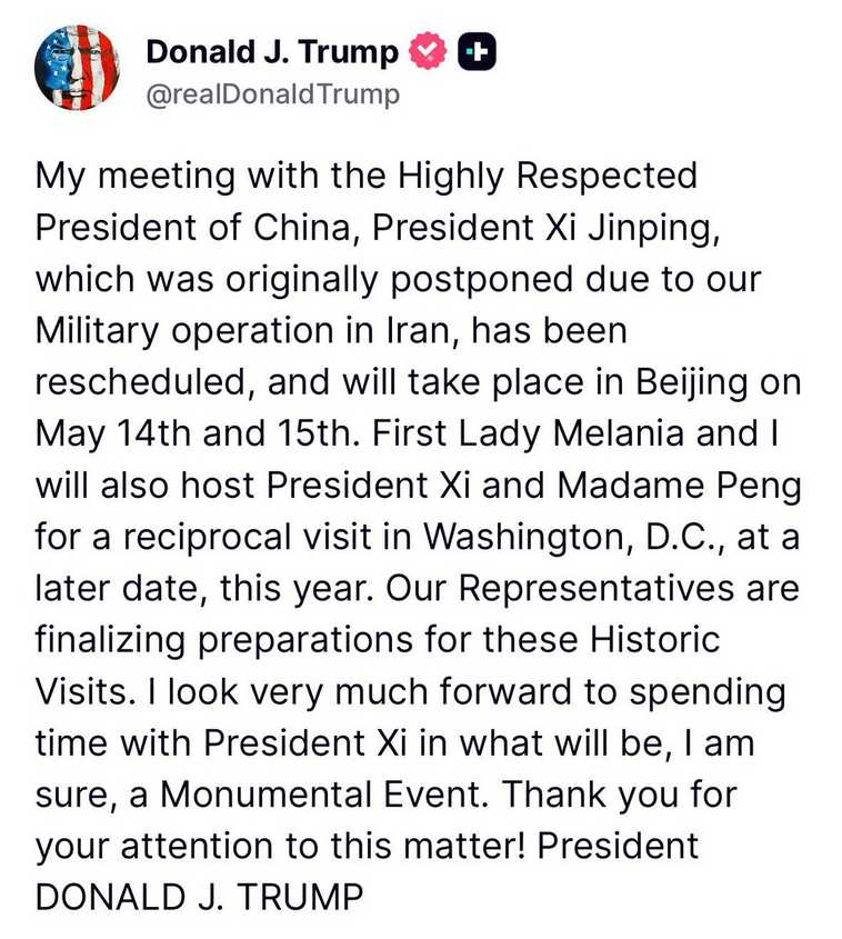 Trump’s meeting with Xi Jinping in China has been pushed back to May. https://truthsocial.com/@X22Report/116291810036230719