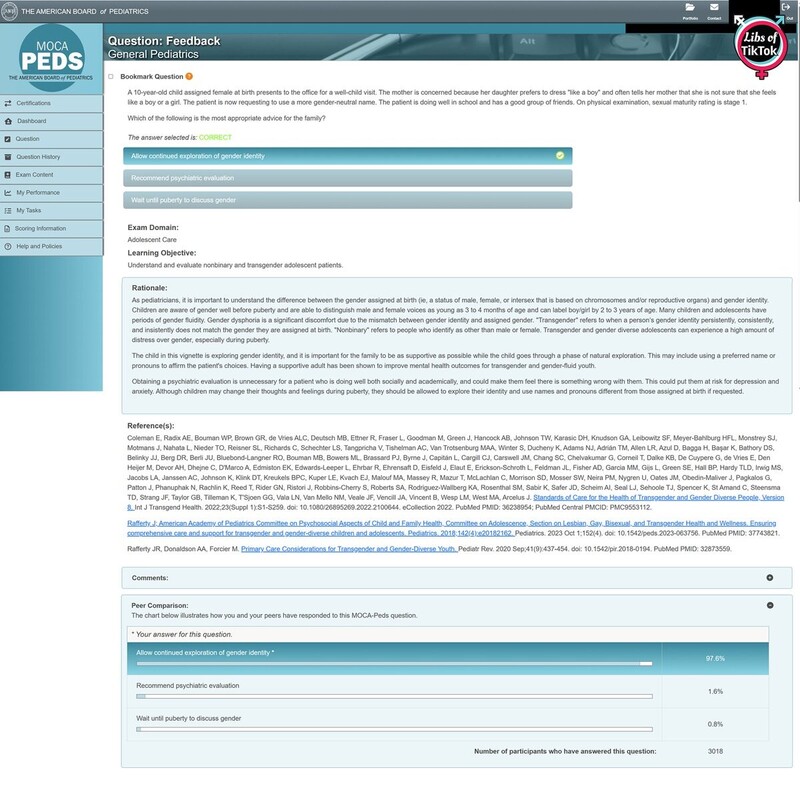 🚨EXCLUSIVE🚨: American Board of Pediatrics certification questionnaire instructs doctors to AFFIRM children's gender delusions and recommend they "continue exploring their gender identity."