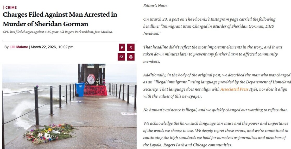 WHAT?!? Loyola University Chicago’s student newspaper The Loyola Phoenix issued an editor's note APOLOGIZING for calling Sheridan Gorman's m*rderer an "illegal immigrant."