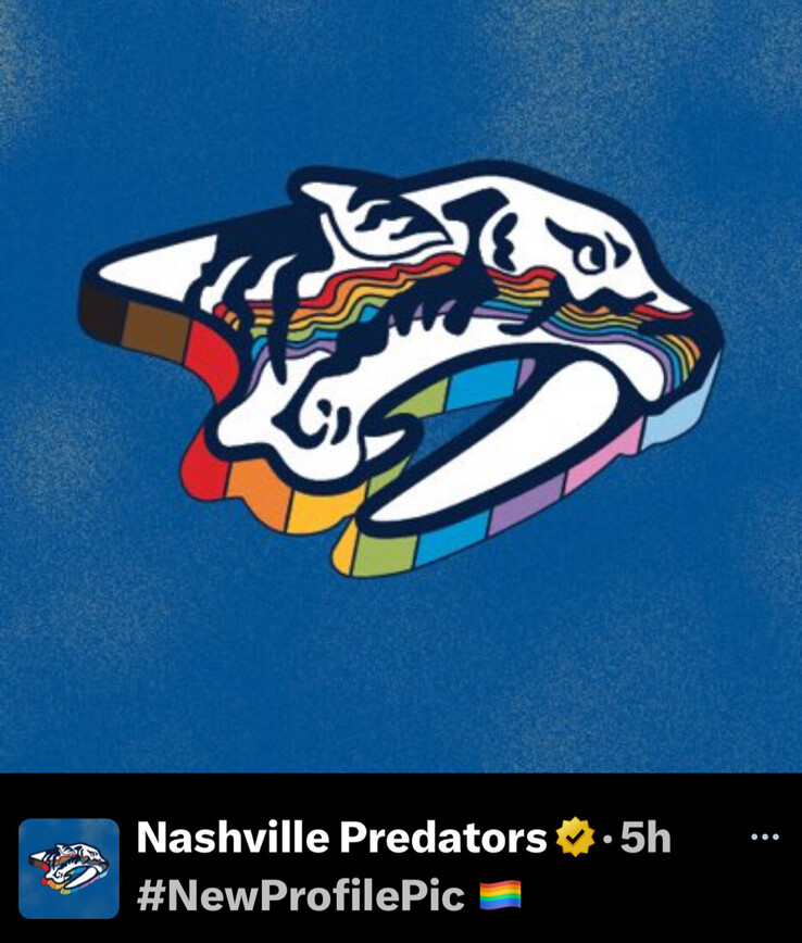 Nashville Predators temporarily changed their logo to show solidarity with the LGTBQ community https://truthsocial.com/@CitizenFreePress/116297205438037754