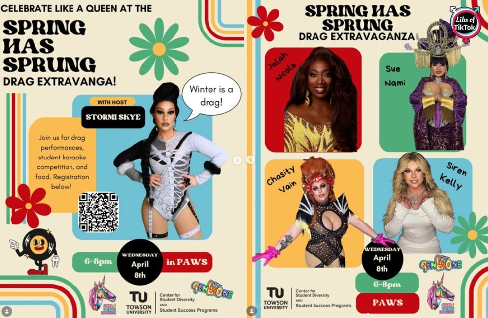 Towson University is hosting a drag queen event where grown men dress up provocatively as women and perform s*xual dances