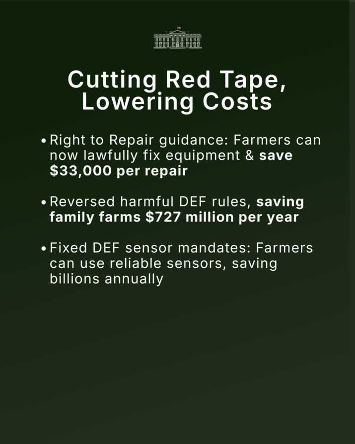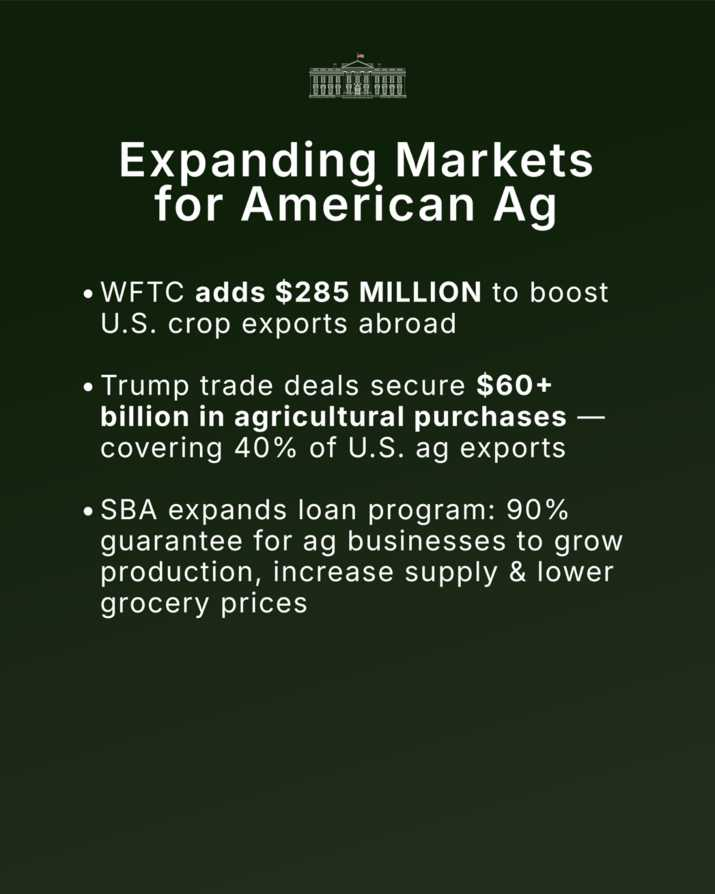 President Donald J. Trump is DELIVERING BIG for America’s farmers and ranchers! 🇺🇸 https://truthsocial.com/@WhiteHouse/116302667929693477