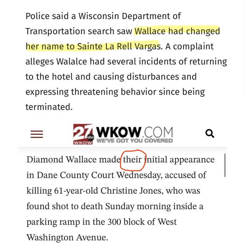 One outlet refers to Wallace as “they” and another notes that Wallace filed a name change