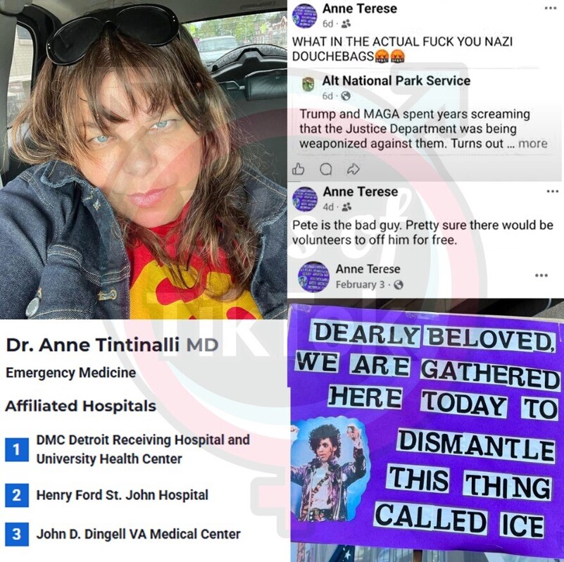 SCOOP: Anne Terese Tintinalli, a registered doctor affiliated with multiple hospitals in the Detroit, Michigan area, made posts online calling for the abolishment of ICE and the ass*ssination of Pete Hegseth.