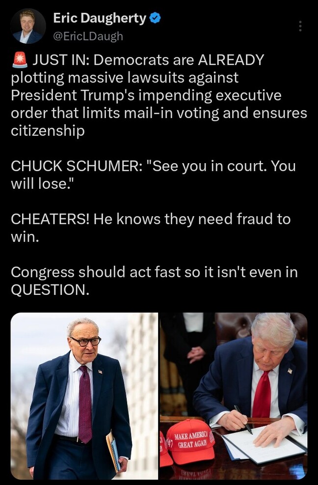 After President Trump sign an executive order cracking down on MASS MAIL-IN VOTING, which is susceptible to massive fraud, Trump is set to require DHS and Social Security to VERIFY voter rolls, improve tracking and limit mail-in ballots to approved voters 🔥, democrats panic is glorious 🤣🤣🤣🤣🤣 https://truthsocial.com/@Qanon76/116328719143290830